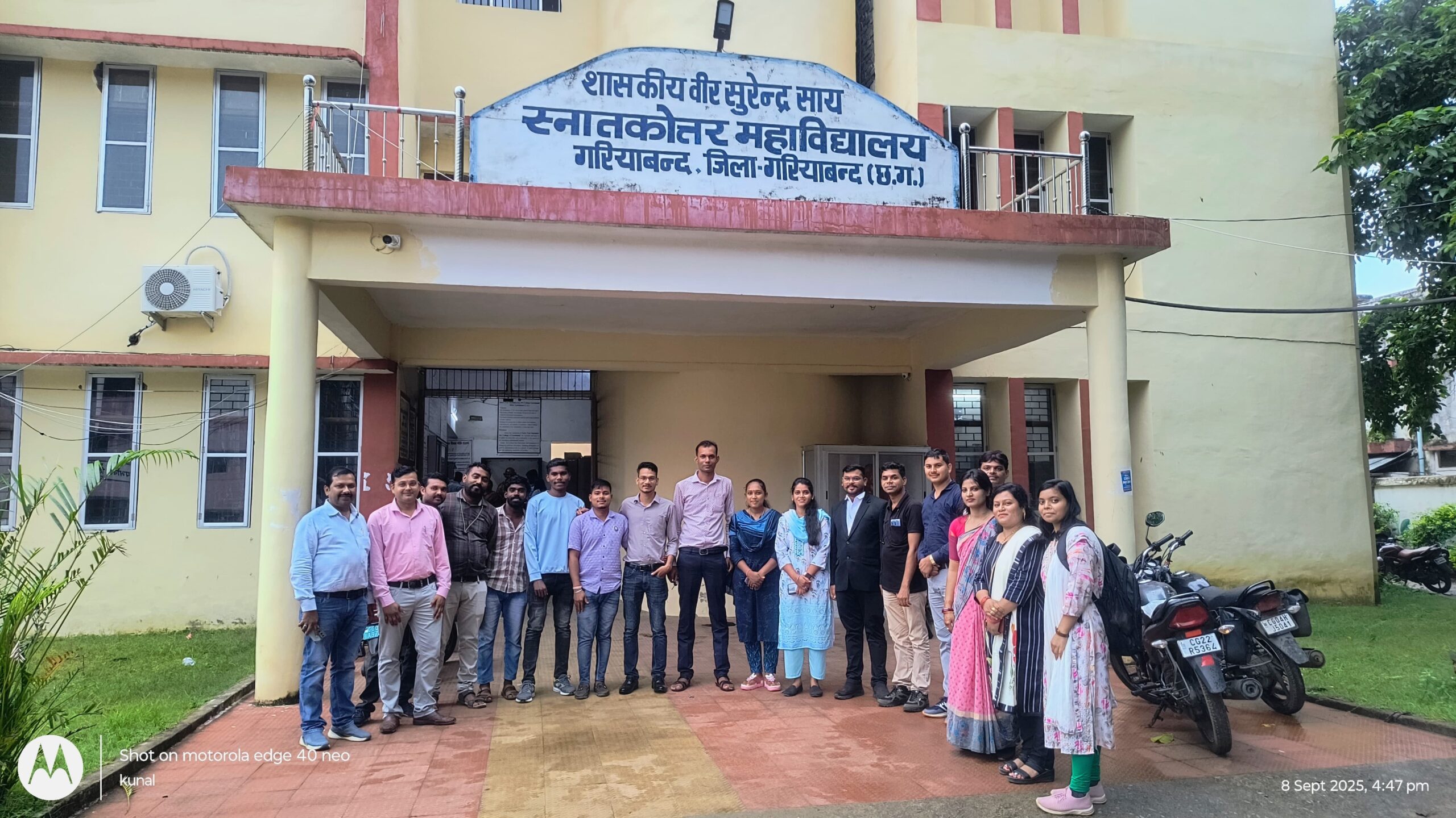 छत्तीसगढ़ रजत जयंती महोत्सव 2025 के अवसर पर महाविद्यालय में एल्युमनी मीट का आयोजन हुआ-शासकीय वीर सुरेन्द्रसाय स्नातकोत्तर महाविद्यालय गरियाबंद में दिनांक 8/09/2025 को भूतपूर्व छात्र-छात्राओं को आमंत्रित किया गया।
