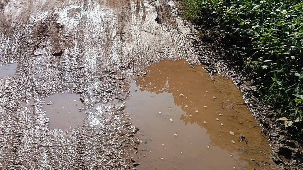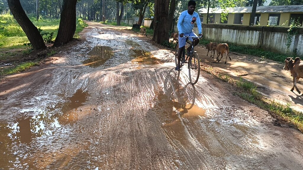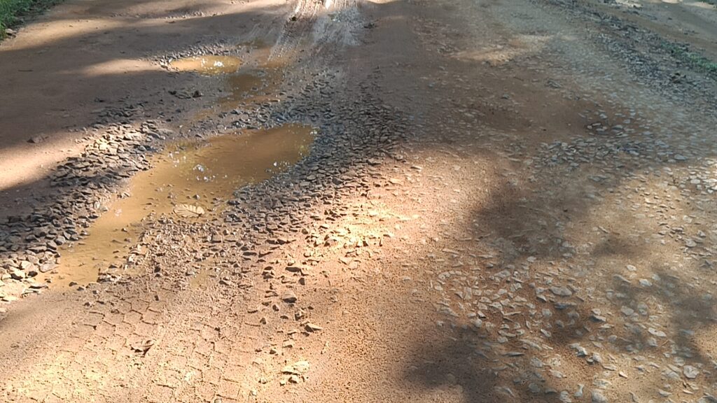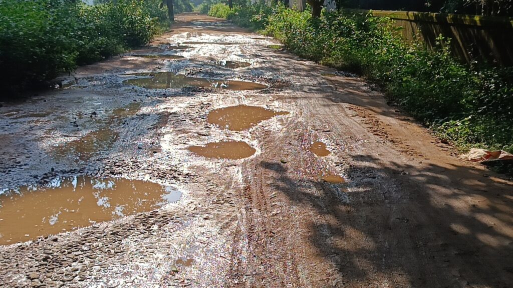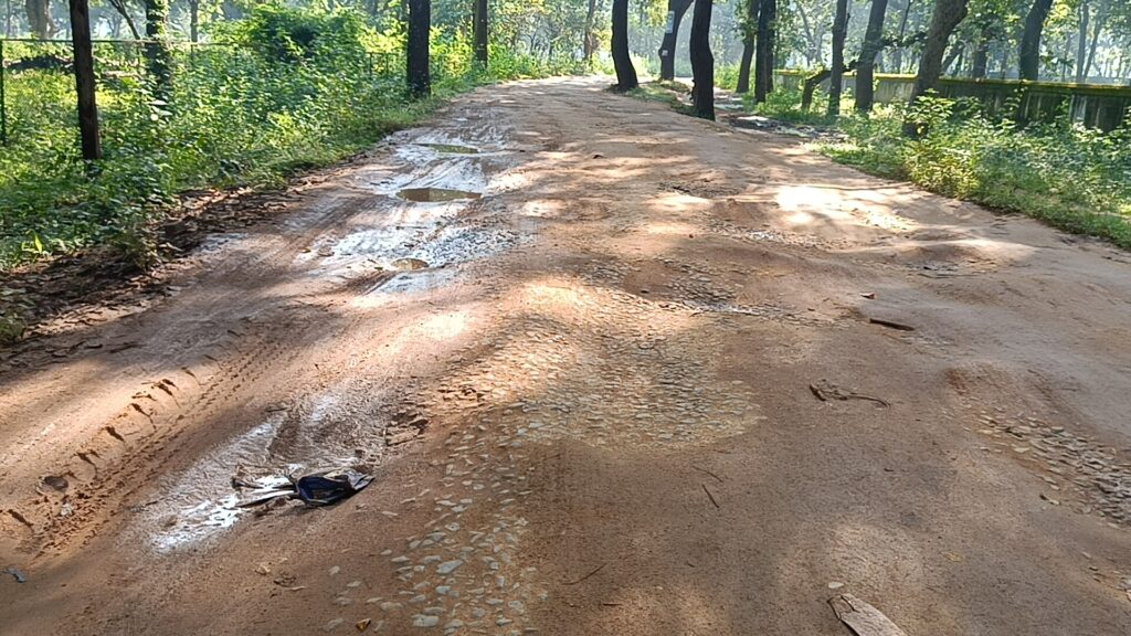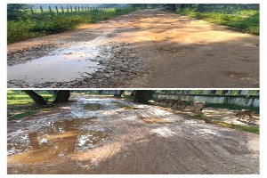 - केशोडार रोड –WBRM बनाए गए 2 वर्षों के लगभग आज रोड की स्थिति बदहल नाव की तरह चलने पर मजबूर जीता जागता गड्ढे में सड़क की तस्वीर
